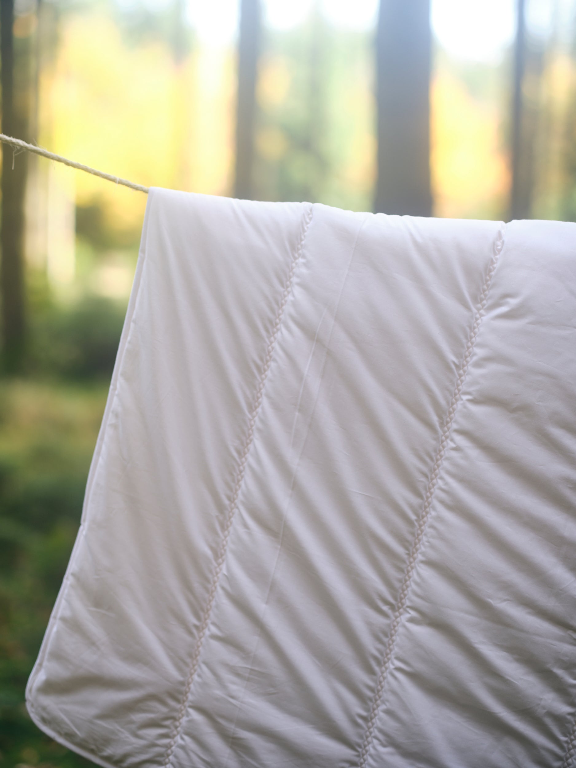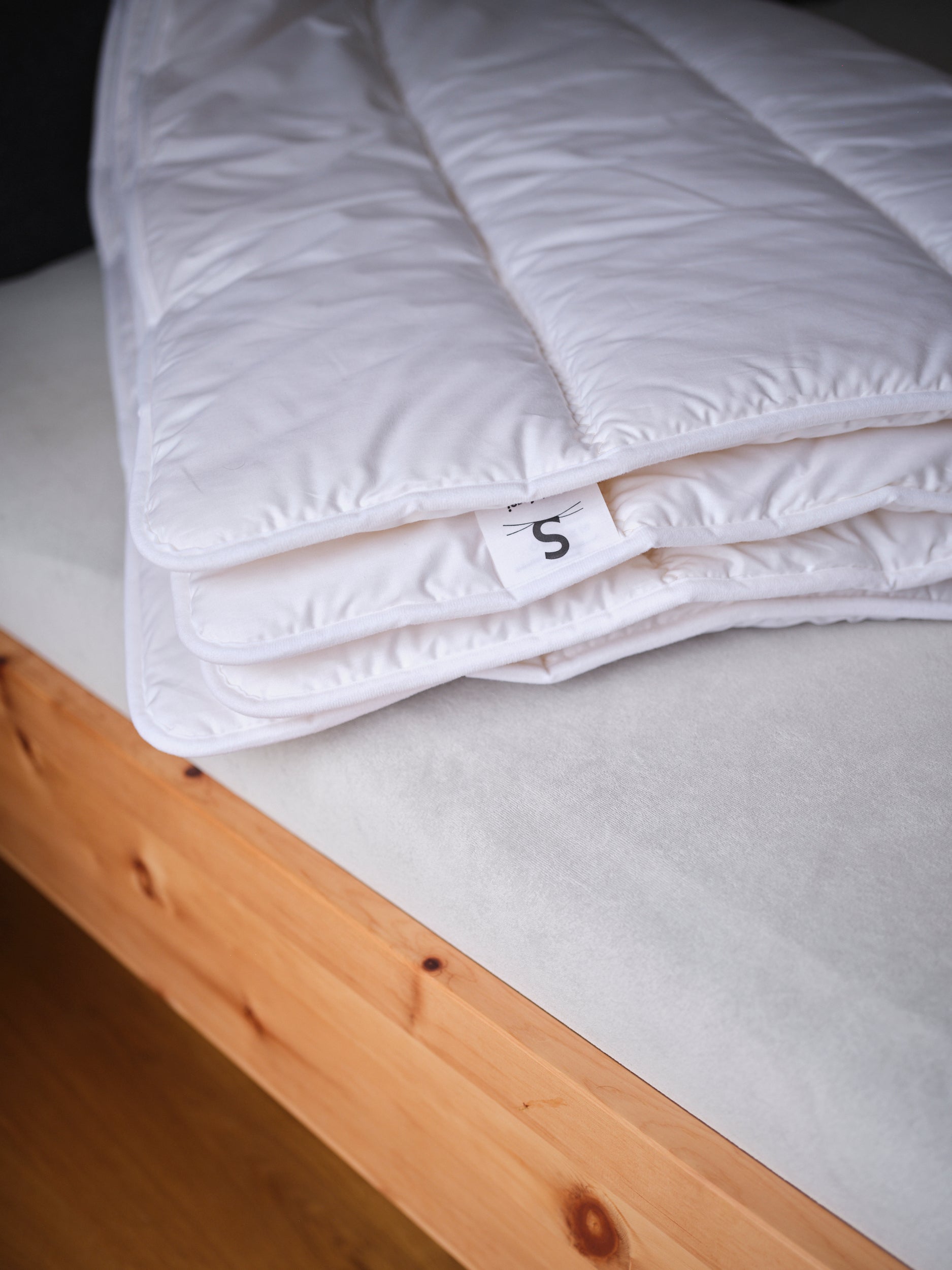 Wolle sorgt das ganze Jahr über für ein ausgeglichenes Schlafklima – sie wärmt im Winter und kühlt im Sommer, ohne sich je feucht anzufühlen. Ein kurzer Moment zum Lüften und sanftes Aufschütteln genügen, damit die Füllung frisch bleibt und ihr natürliches Volumen zurückgewinnt.